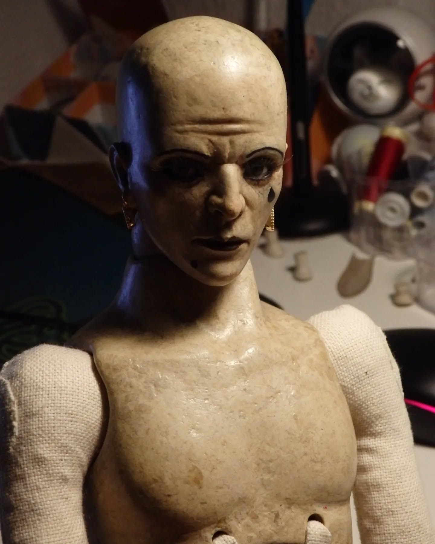 These photos are selected process notes—tests, fittings, and the moments when a face stops being “a head” and becomes someone.